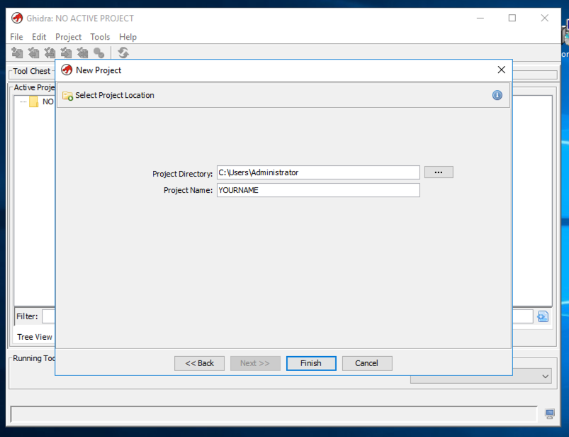In the "Select Project Location" page, enter your name into the "Project Name" field, as shown below, and click Next>>.