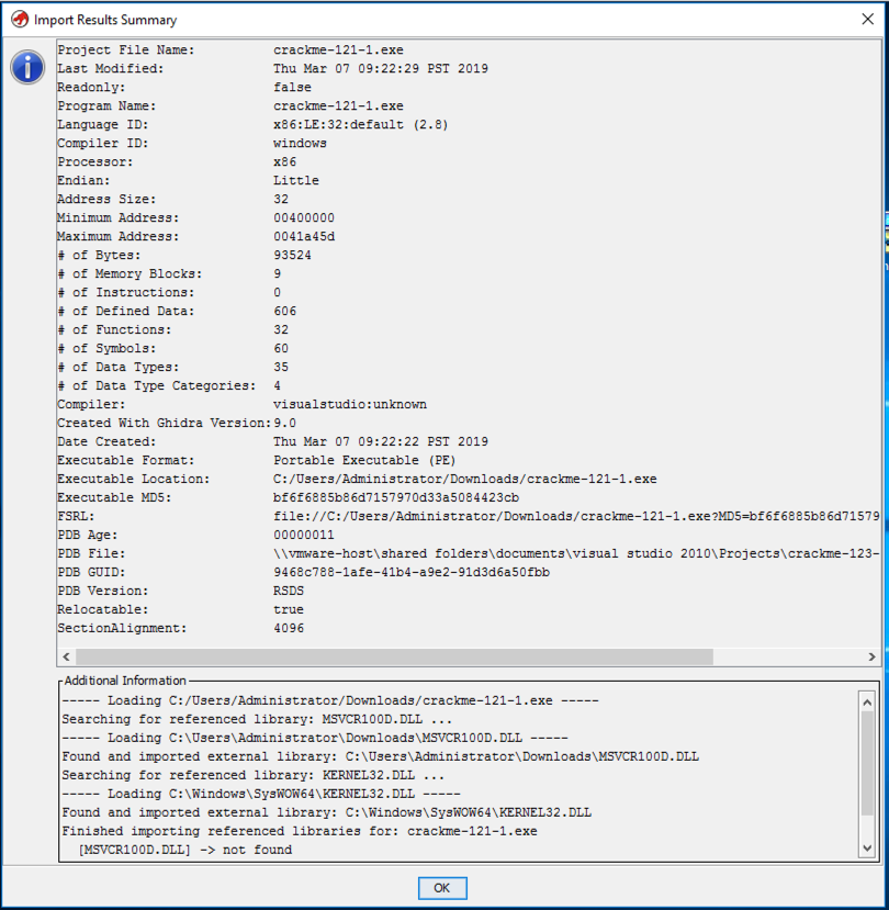 In the "Select File to Import" window, double-click Downloads and double-click crackme-121-1.exe.