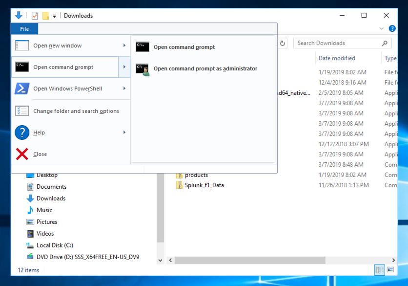 At the top left of this window, click File, "Open command prompt", "Open command prompt", as shown below.
