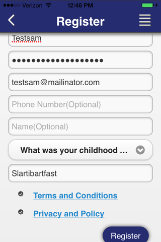 Register an account with the password
