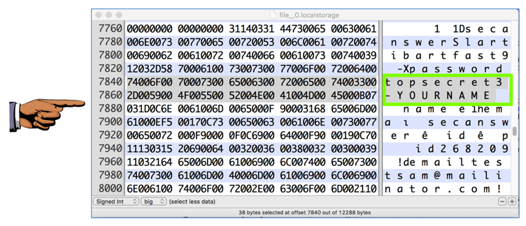 Scroll through the file to see your stored password, which should contain your name, as shown below.