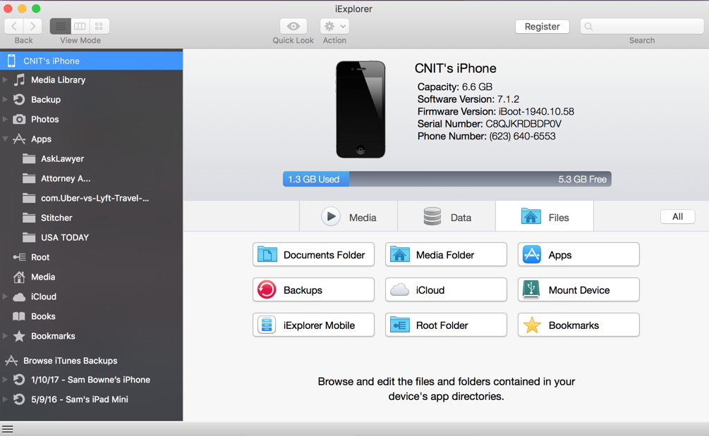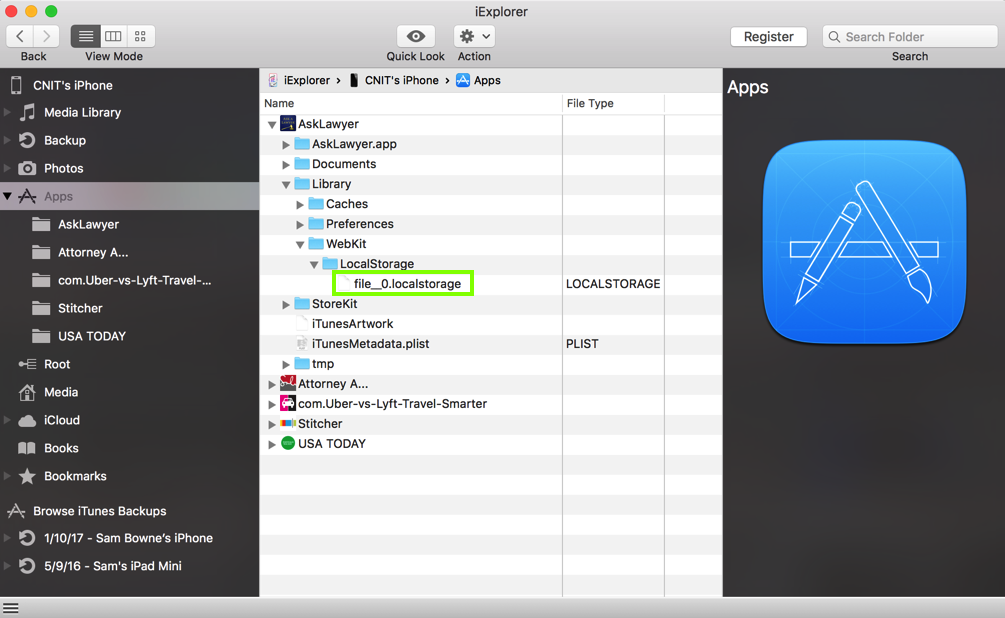 In iExplorer, click Files, Apps.