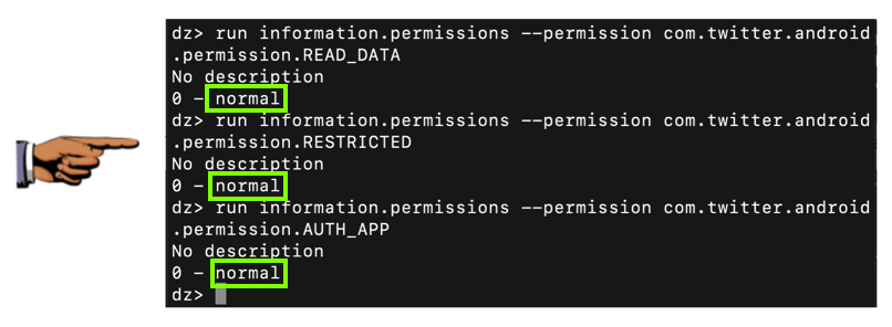 run information.permissions --permission com.twitter.android.permission.READ_DATA