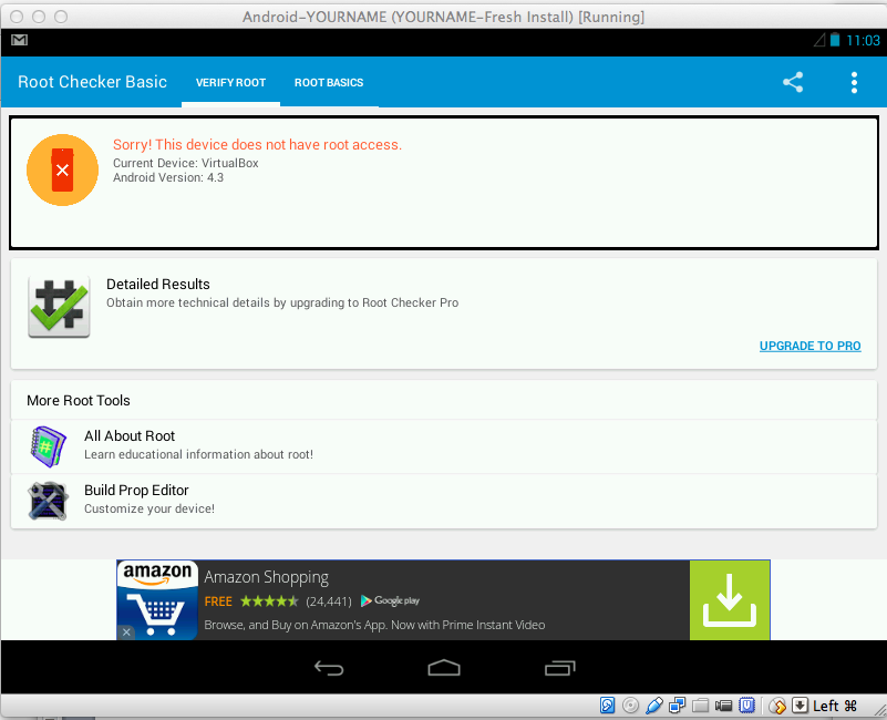 Make sure your image shows "Congratulations! This device has root access", as shown above.