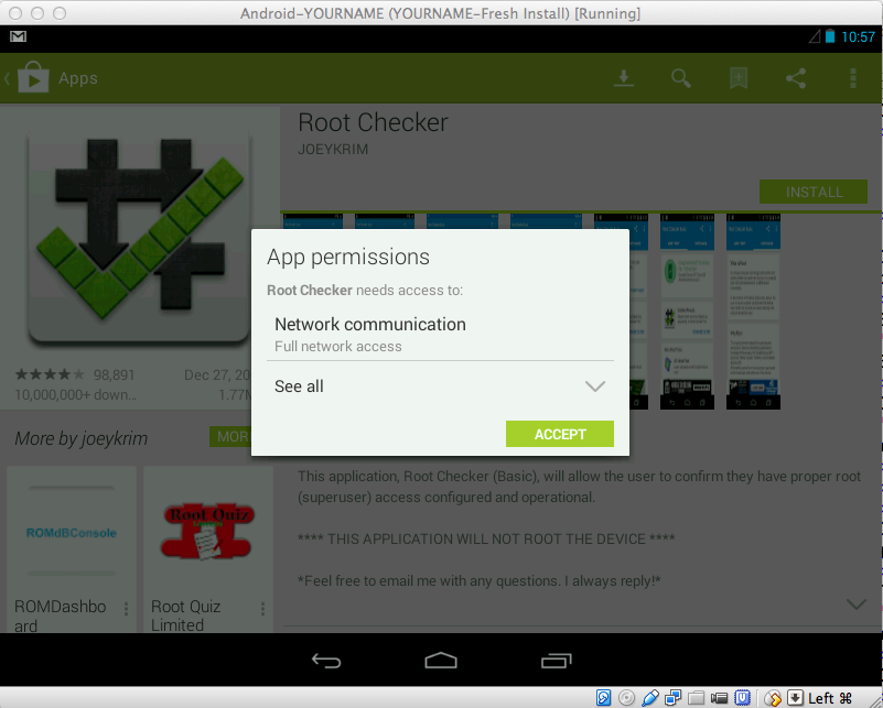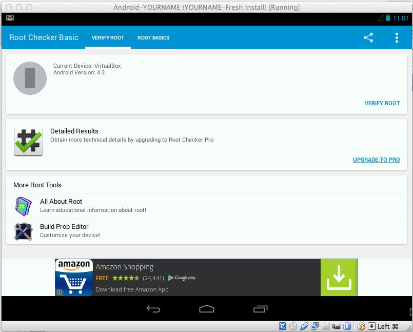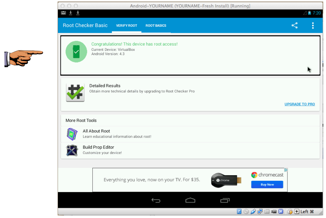A message appears, saying "Congratulations! This device has root access", as shown below.
