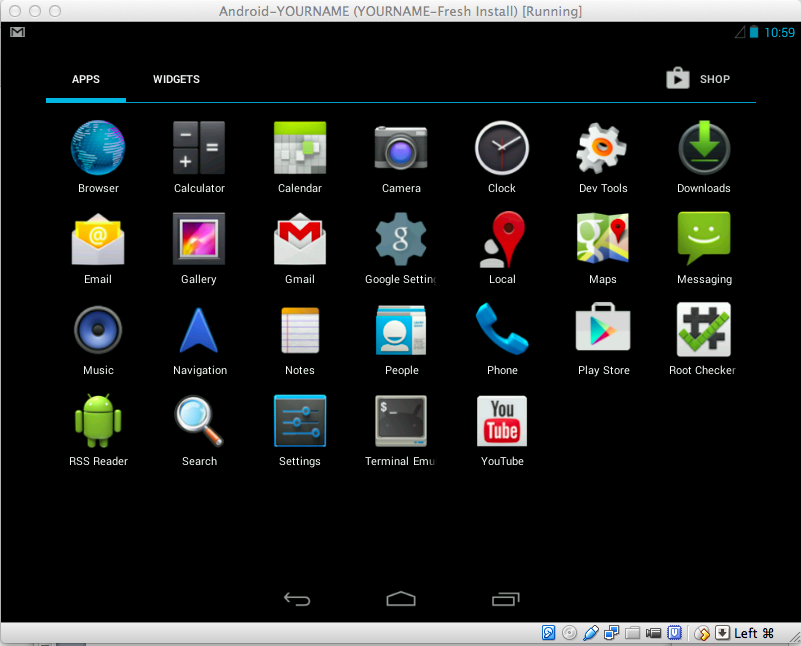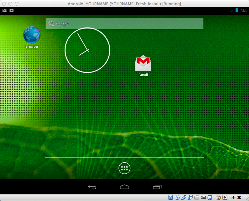 When the installation finishes, click the center icon at the bottom of the Android screen, which looks like an envelope that's been opened. This is the Home button.