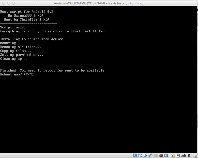 Are you running on the Alt+F1 android shell? (Y/N):type Y and press Enter.