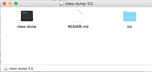 Download the class-dump-3.5.dmg file, and double-click it. A window shows the single executable inside it, as shown below.