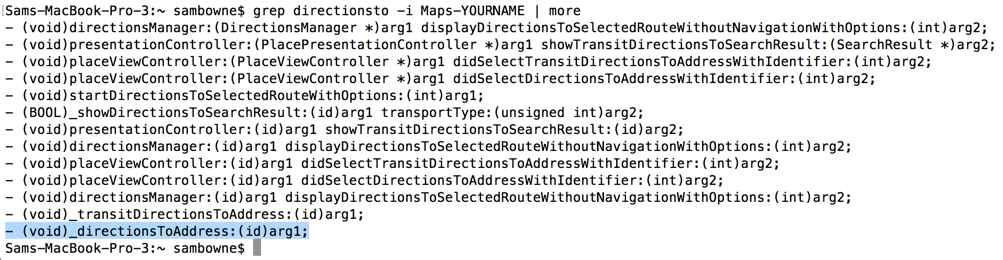 grep directionsto -i Maps-YOURNAME