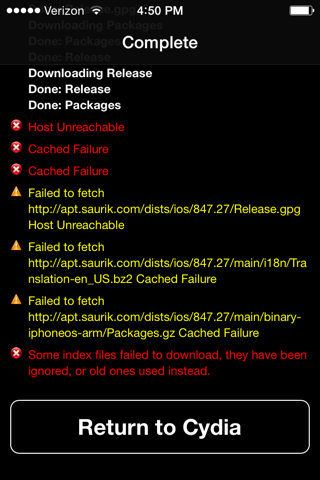 When the download is complete, tap "Return to Cydia".