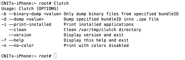 2. Unlike the apps that come preinstalled with the device, the apps are encrypted, hence you will have to decrypt them first. We'll use the "Clutch" utility to decrypt them.