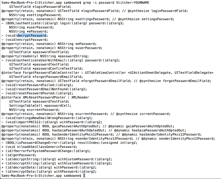 grep -i password Stitcher-YOURNAME