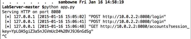 This is good, because the emulated Android phone is using that address and port number to reach the server.