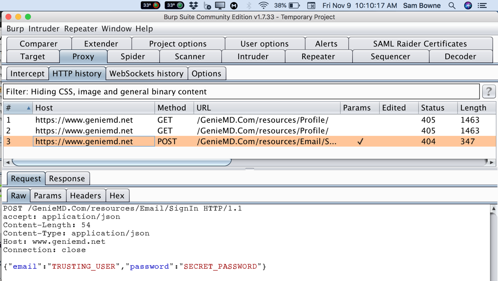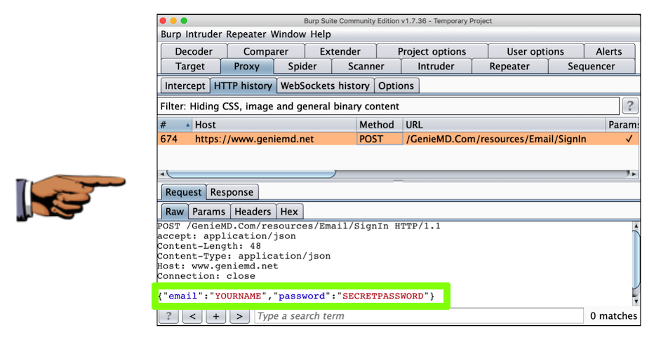 Find the POST method going to /GenieMD.Com/resources/Email/SignIn.