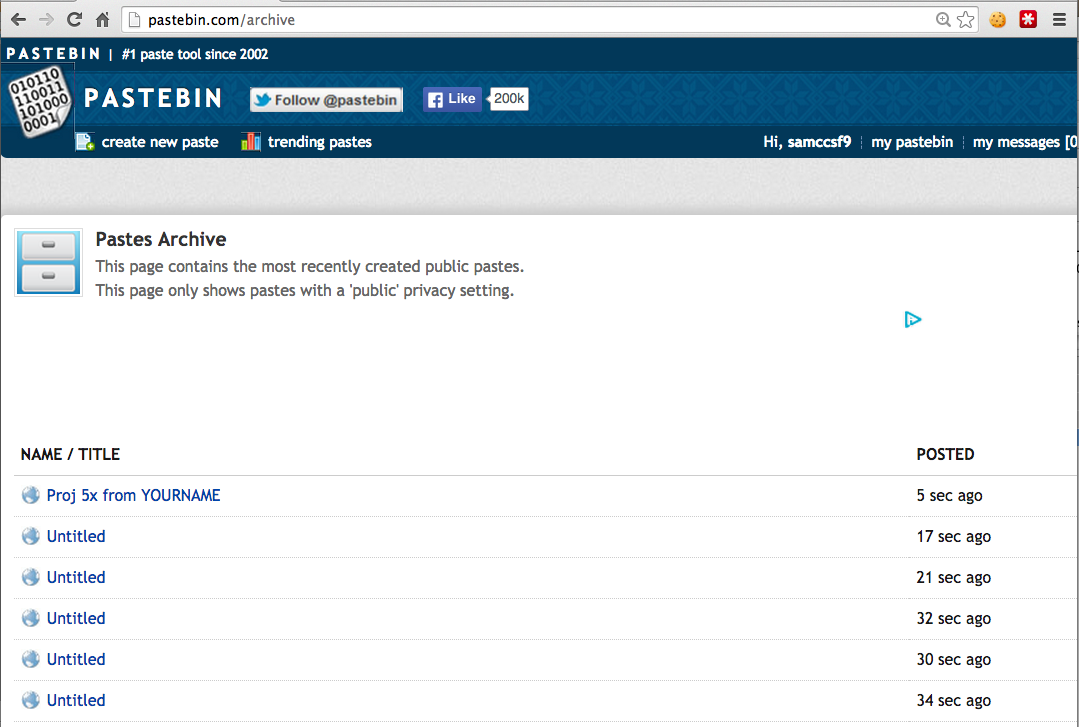 Find the paste with your name on it and click it. You should see your stolen username and password, as shown below.