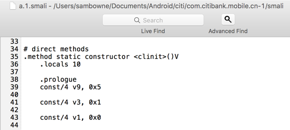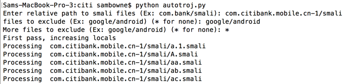 root_dir = raw_input("Enter relative path to smali files (Ex: com.bank/smali): ")
