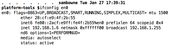 The Android device's IP address is shown in the "eth0" row. When I did it, my address was 192.168.1.12. Find your address and make a note of it.