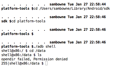 As shown above, you cannot view the contents of /data, and get a "Permission denied" error.