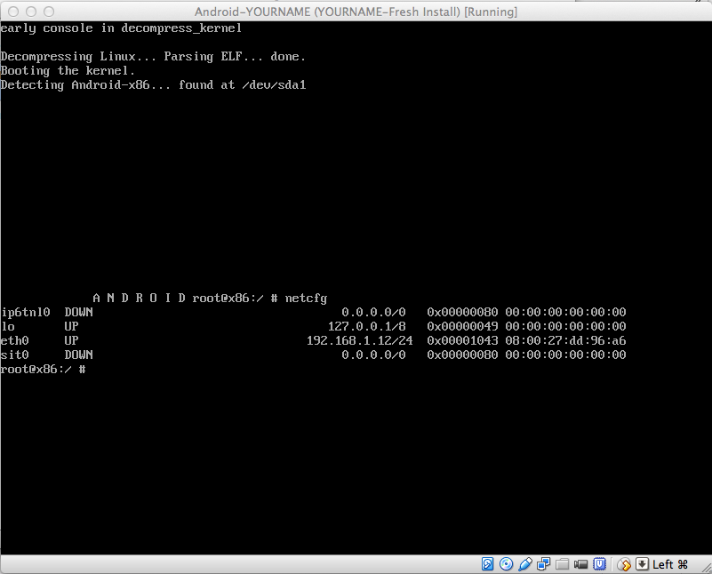 The Android device's IP address is shown in the "eth0" row. When I did it, my address was 192.168.1.12. Find your address and make a note of it.