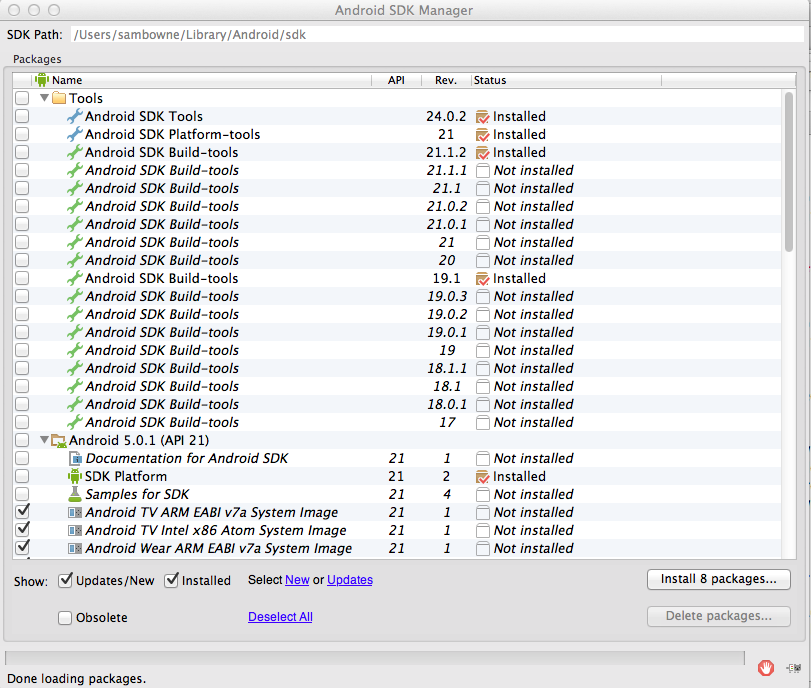 /Users/sambowne/Library/Android/sdkFind your SDK path and make a note of it.
