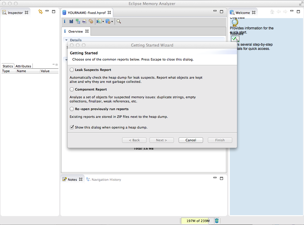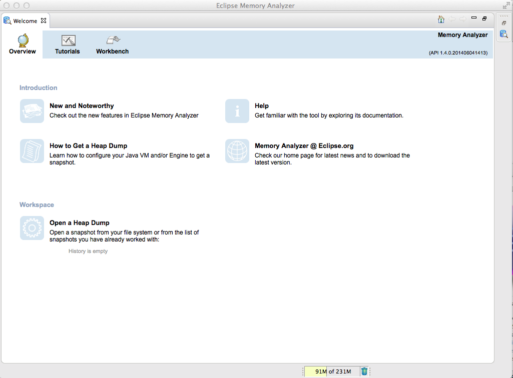 When Memory Analyzer starts, it looks like this: