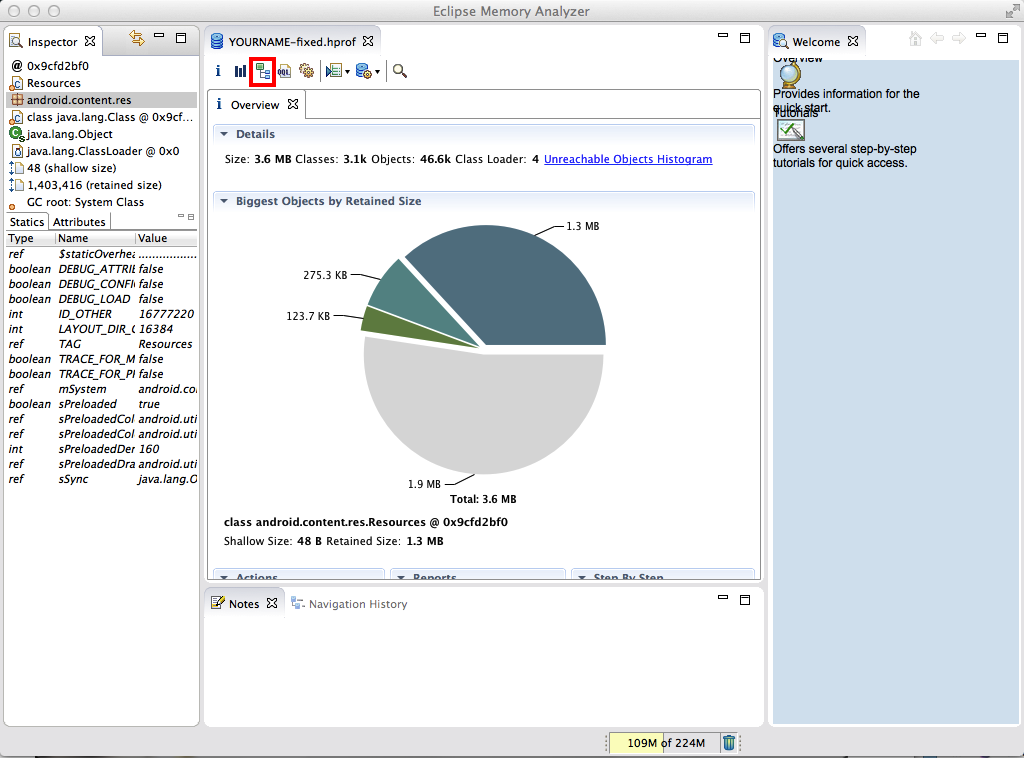 Navigate to the b>YOURNAME-fixed.hprof file on your desktop and double-click it.