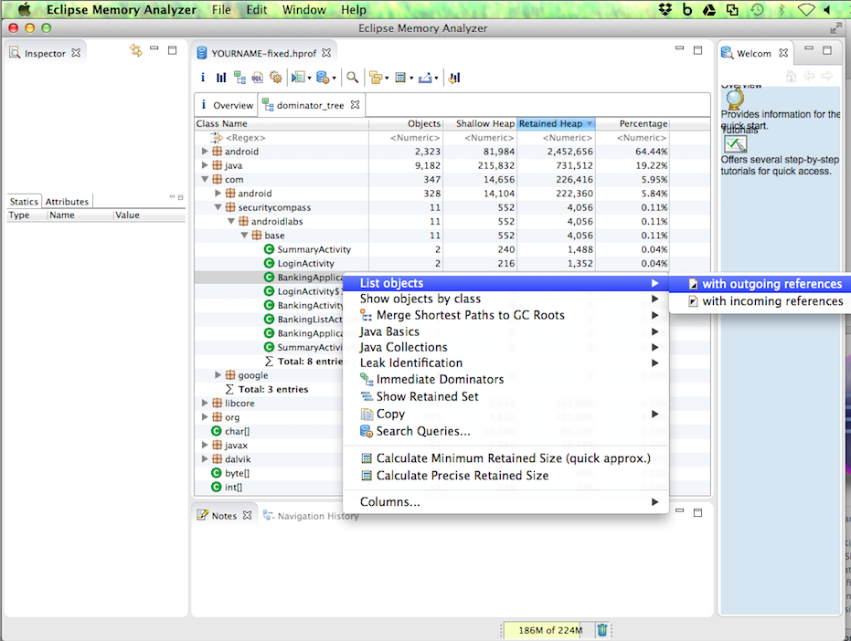 Save the "com.securitycompass.androidlabs.base.hprof" file on your desktop.