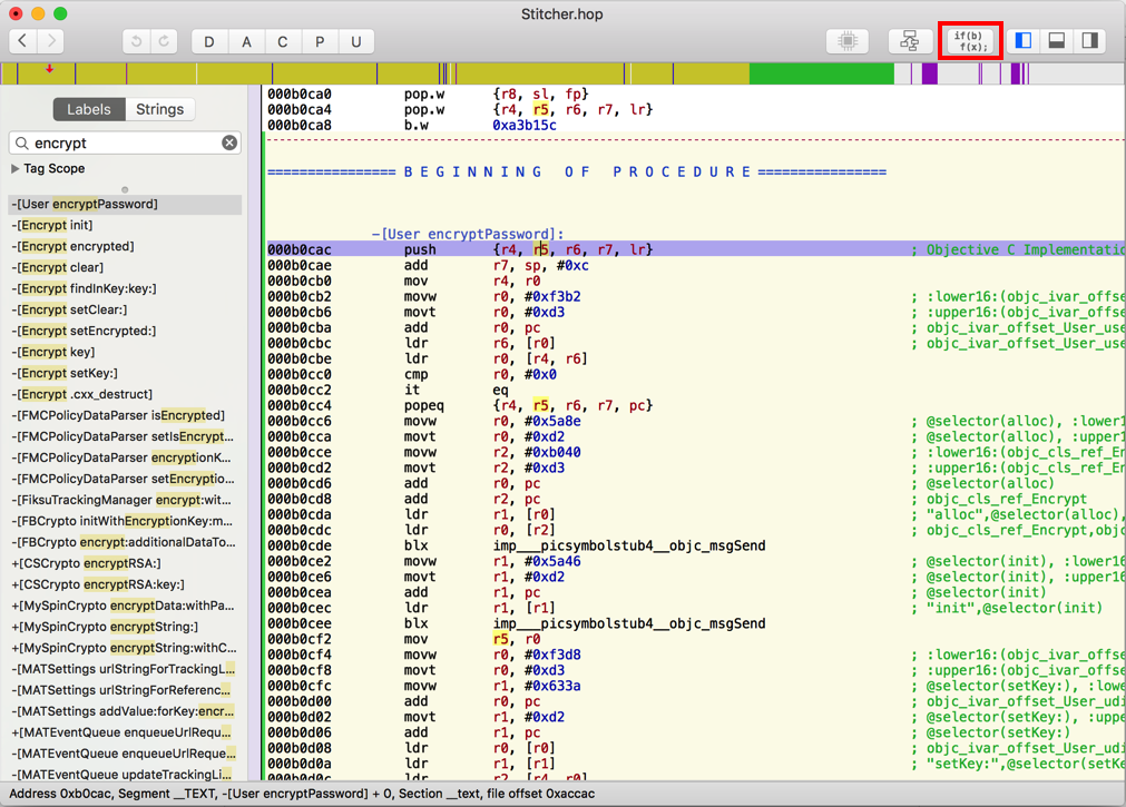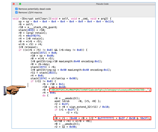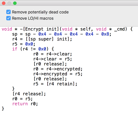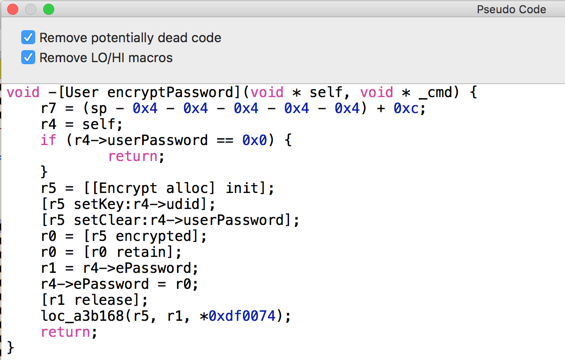 Close the "Pseudo Code" window and, in the left pane of Hopper, click the next method: -[Encrypt init].