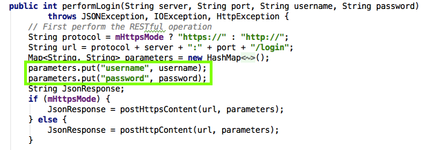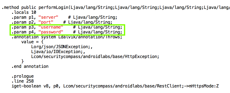 Scroll down, or search for "performLogin(", to find the code shown below.