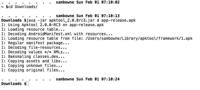java -jar apktool_2.0.0rc3.jar d app-release.apk