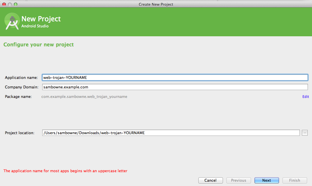 Name the project "Web-Trojan-YOURNAME", as shown below.