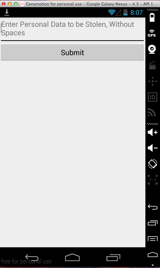 android:hint="Enter Personal Data to be Stolen, Without Spaces"