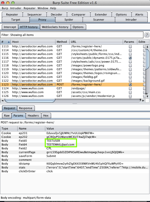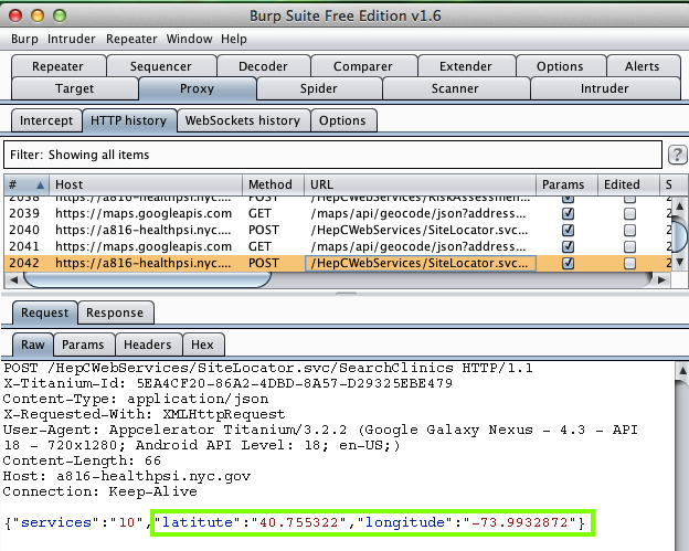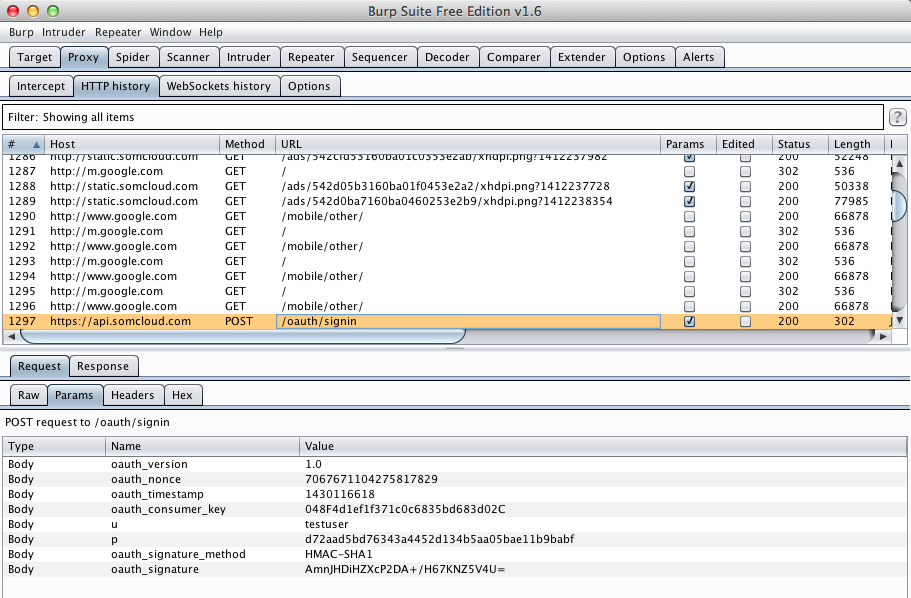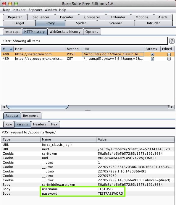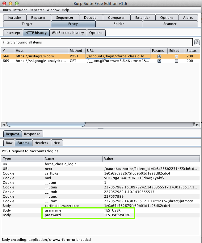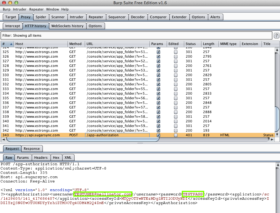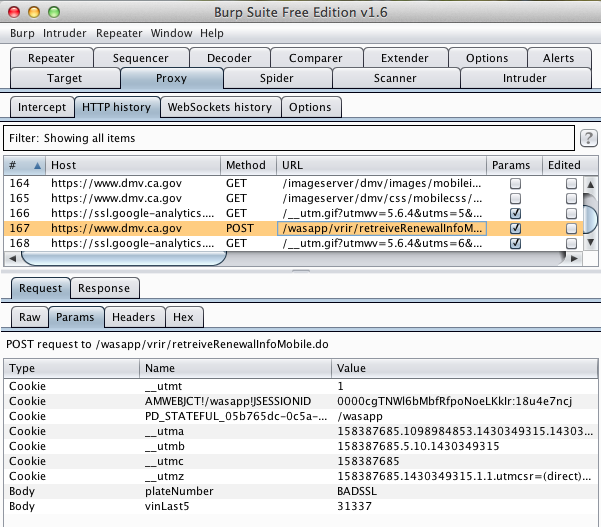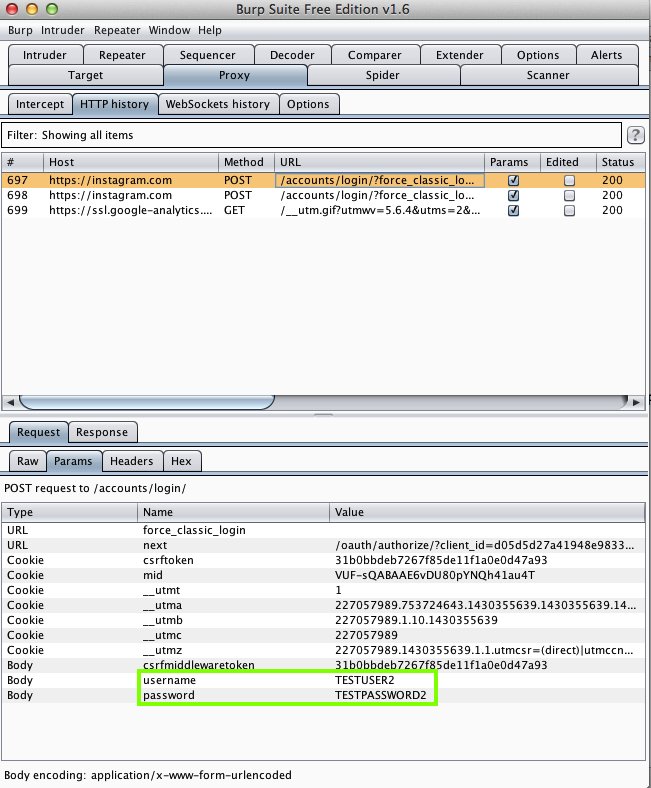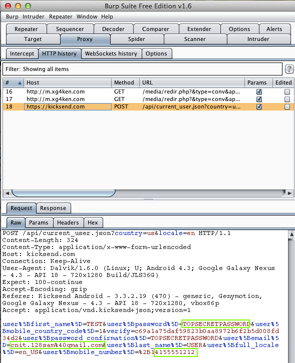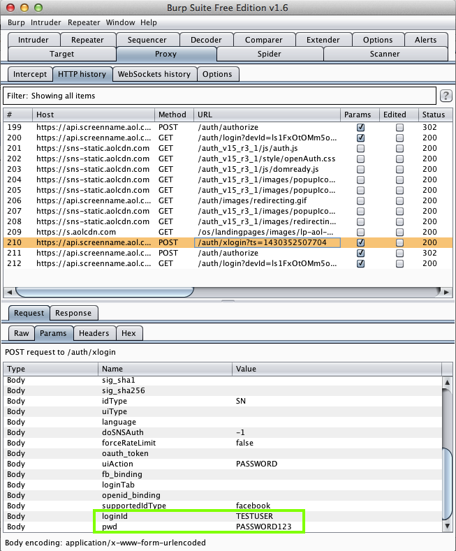 Harvesting them from Burp is to easy--this app uses HTTP with no encryption at all!