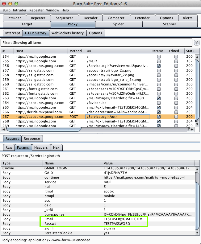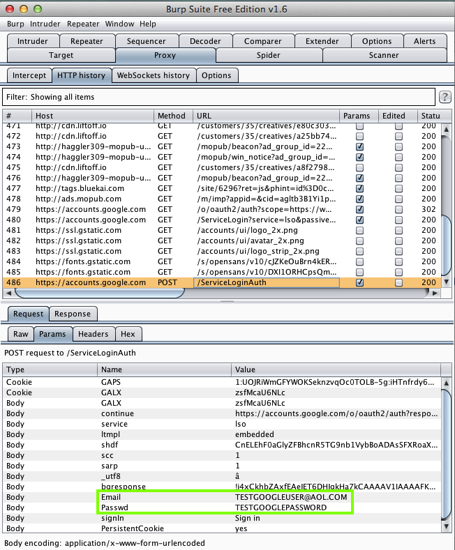 Most aren't vulnerable to an MITM attack, but Google is. Sending test credentials: