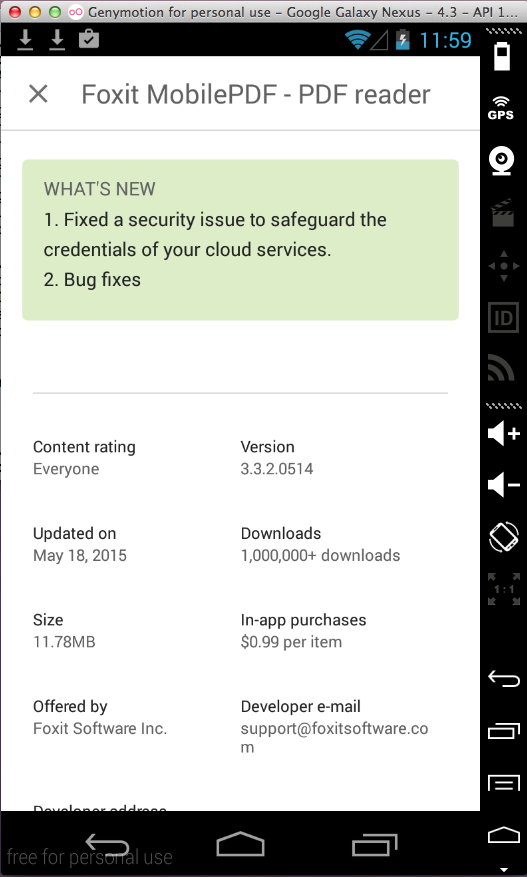 CERT notified the author about the SSL vulnerability on 8-27-14, and the app was updated on 3-13-15, but it's still vulnerable.