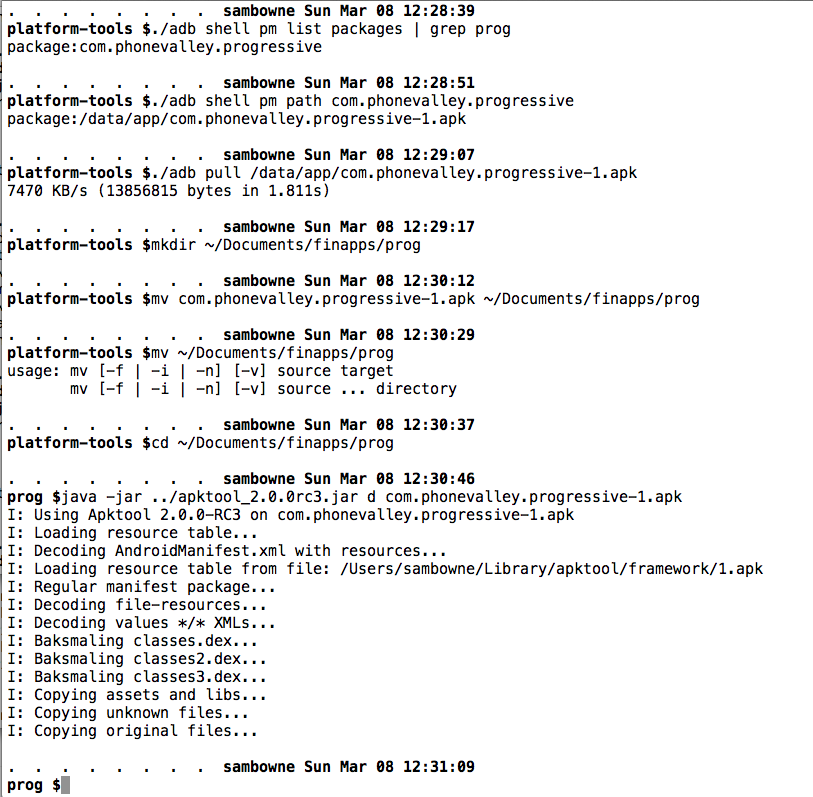 I pulled the APK file from the device with adb, and decoded the APK file with apktool, as shown below.