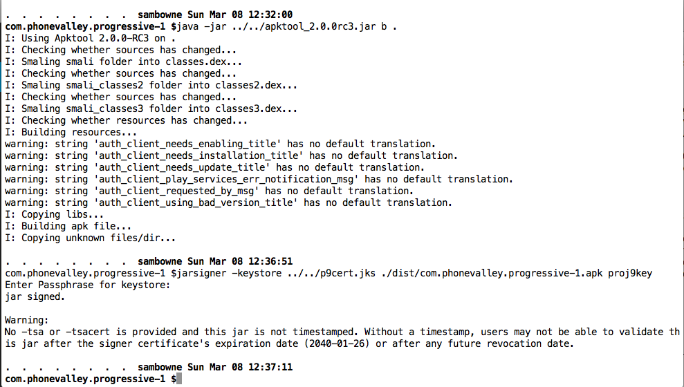 I rebuilt the APK and signed it, as shown below.