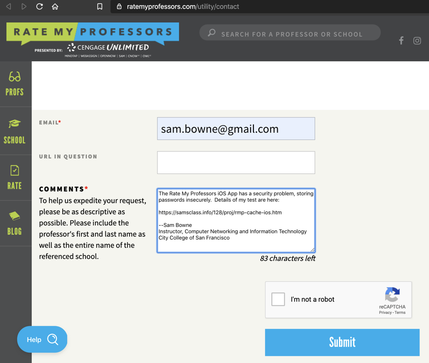 Rate My Professors iOS App Stores Passwords Insecurely