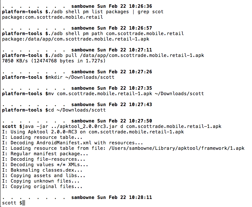 I pulled the APK file from the device with adb, and decoded the APK file with apktool, as shown below.