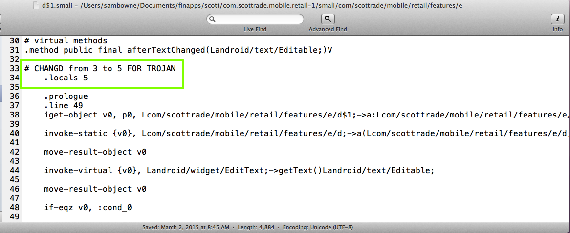 I also modified the d$3.smali file in two places as shown below.