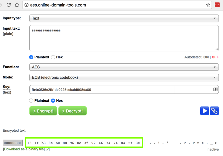 It's clear that the encrypted form of "aaaaaaaaaaaaaaaa" is