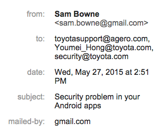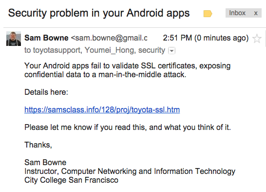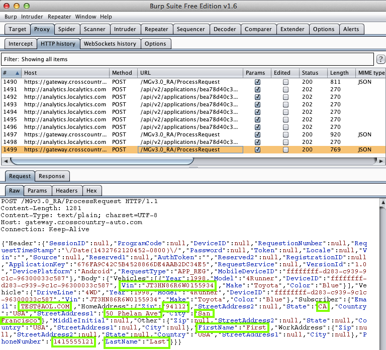 And the app sent them over the Internet insecurely: