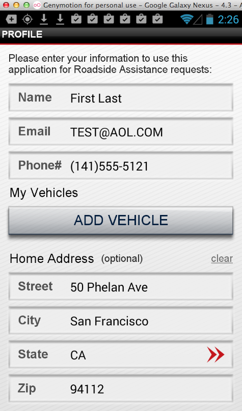 In another part of the app, I entered my current address: