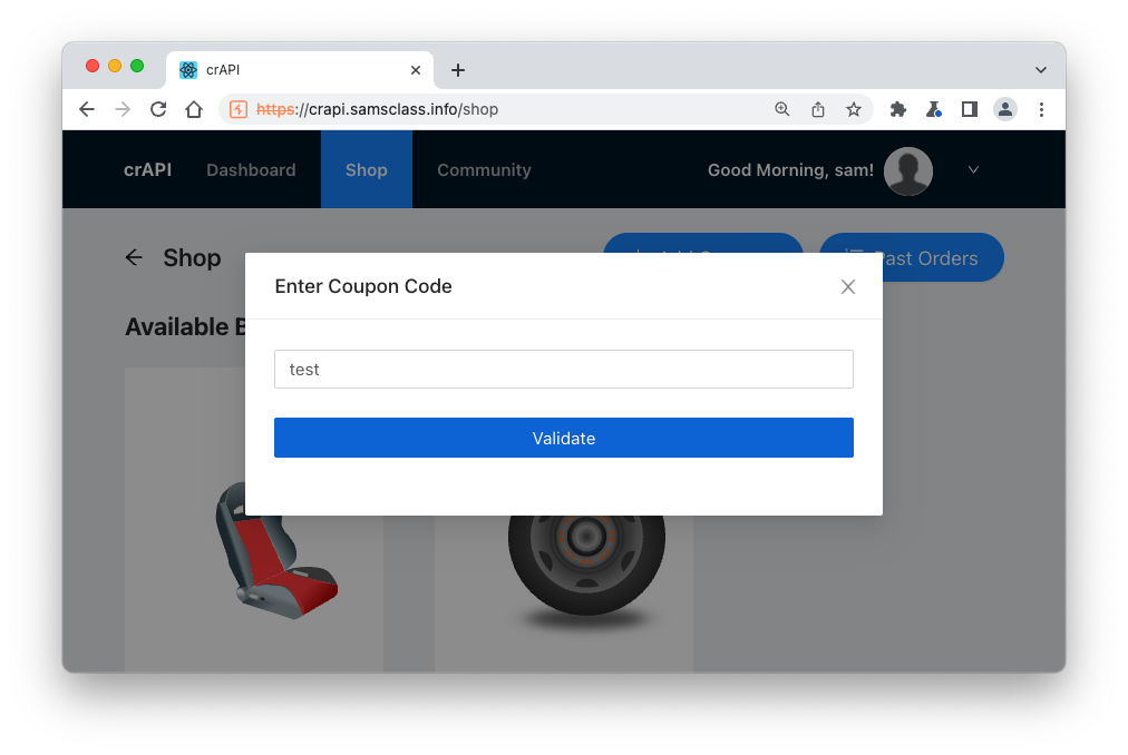 In the "Enter Coupon Code" box, enter a few characters, as shown below, and click Validate.