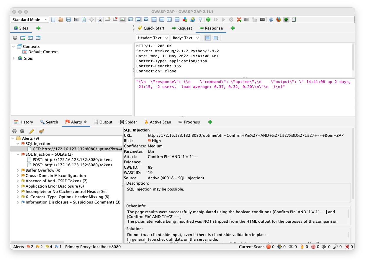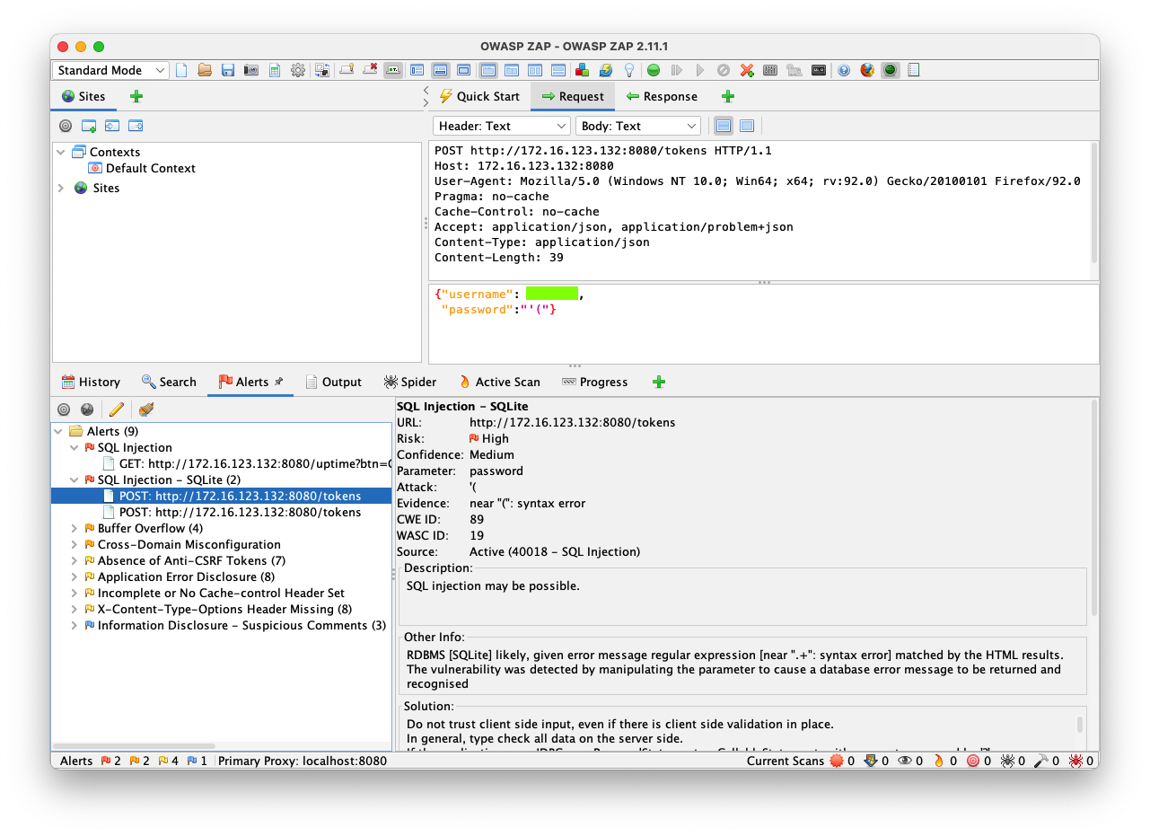 When I used ZAP 2.15.0, it failed to find the SQL injection.To fix that, perform these steps: