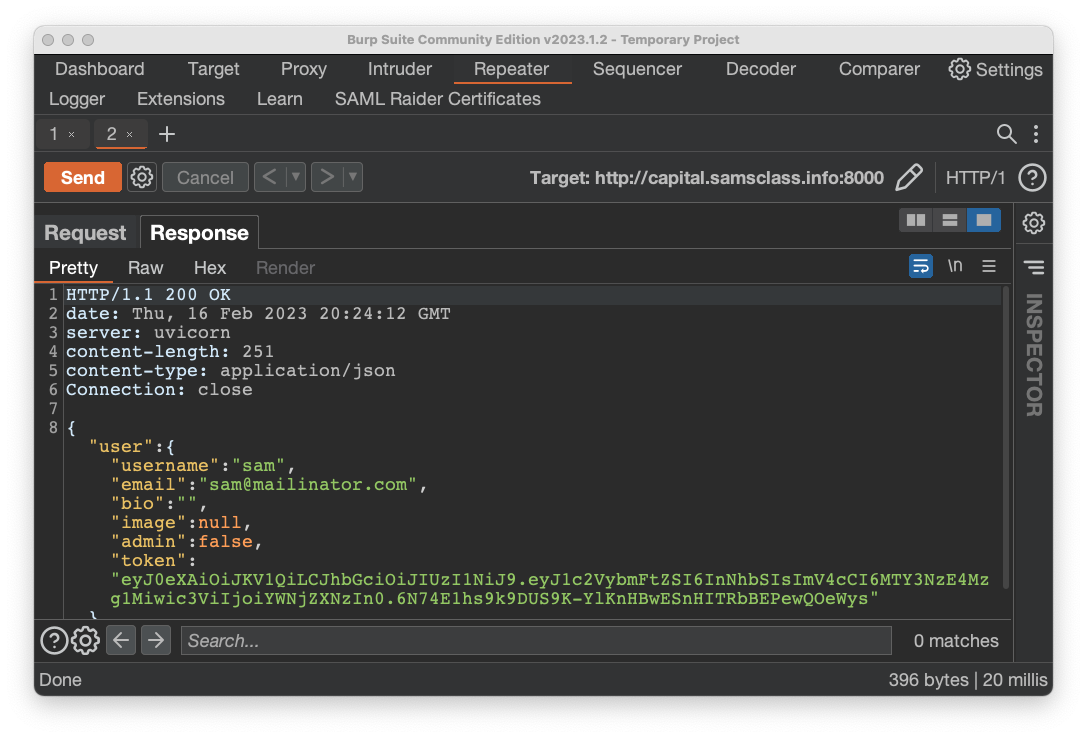 The reply shows that your account was created, and that you are not an admin, as shown below.